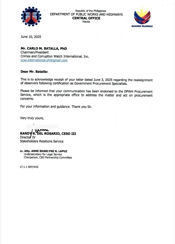 Crime and Corruption Watch International chapter working to fight corruption in The Philippines.