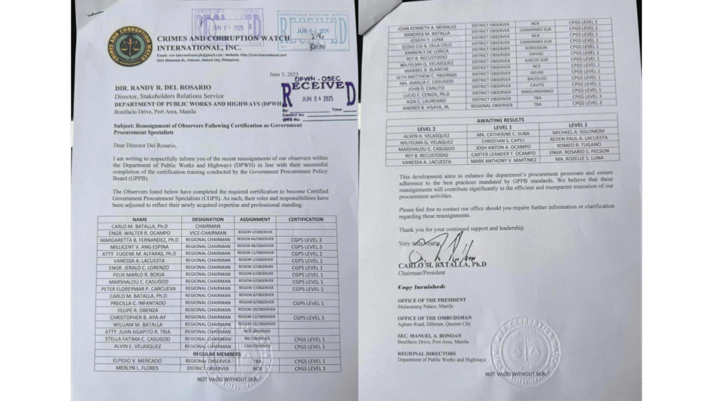 Reassignment and Appointment of CCWI Observers as Certified Government Procurement Specialists